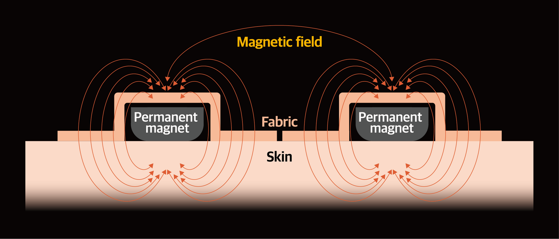 De conische vorm van de magneten zorgt voor een constant contact met de natuurlijke noordpool (-) van het lichaam.
